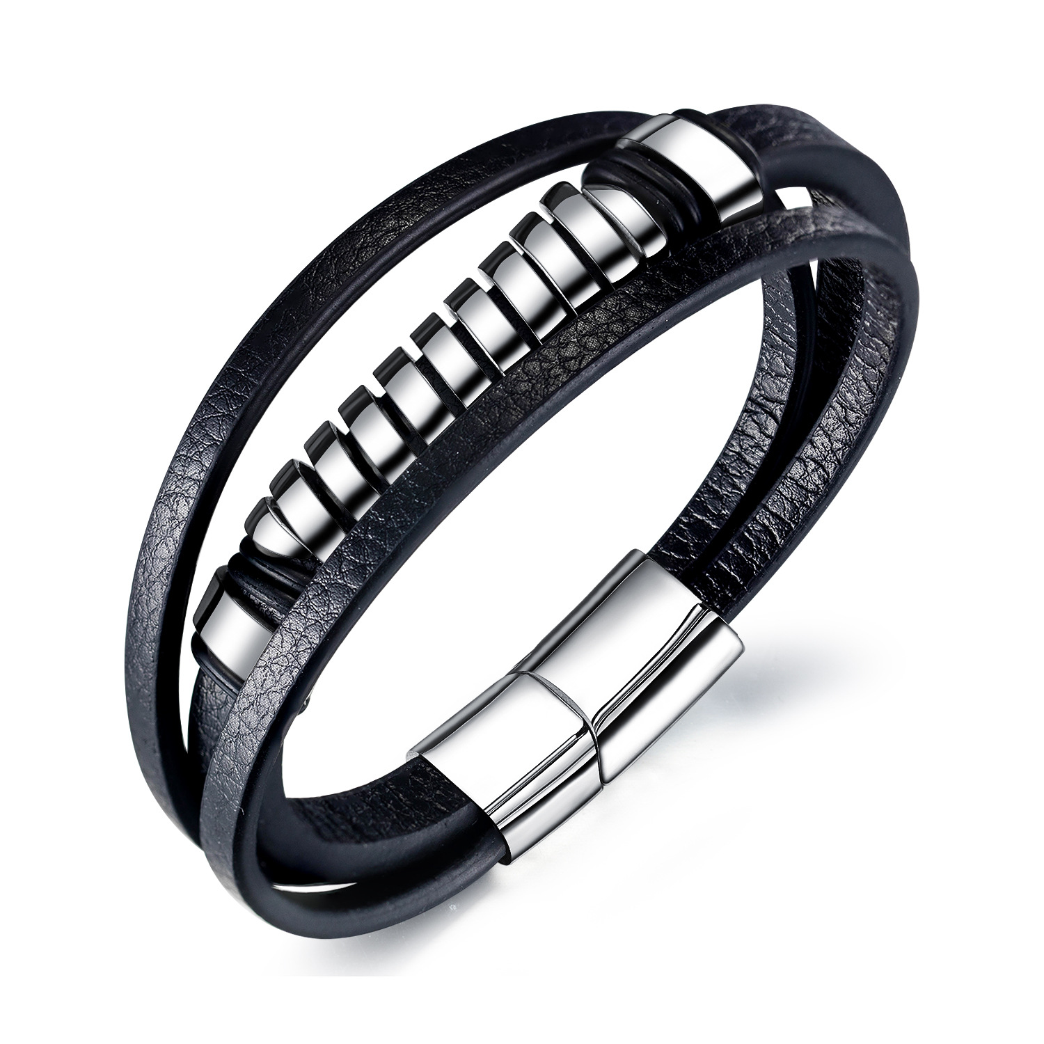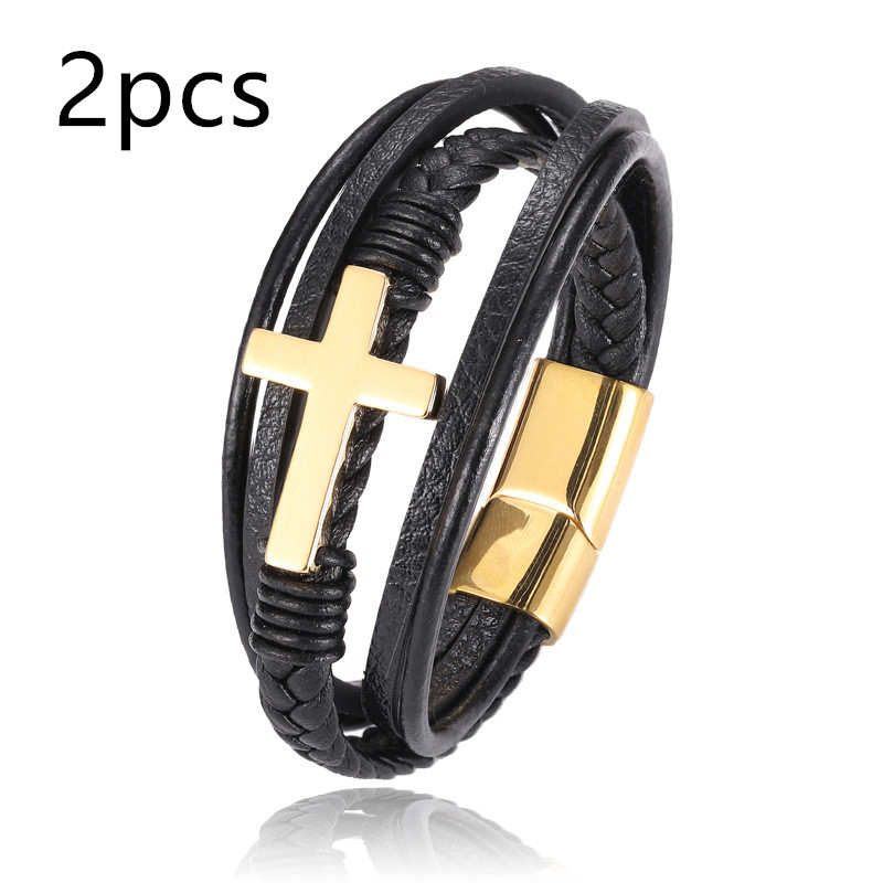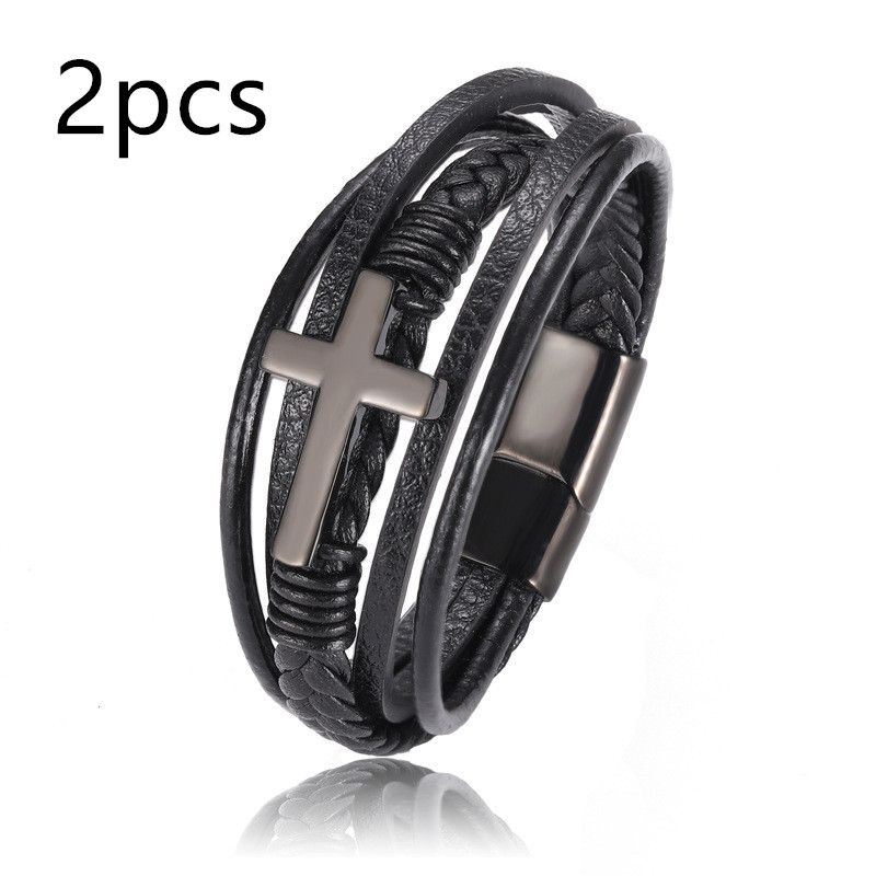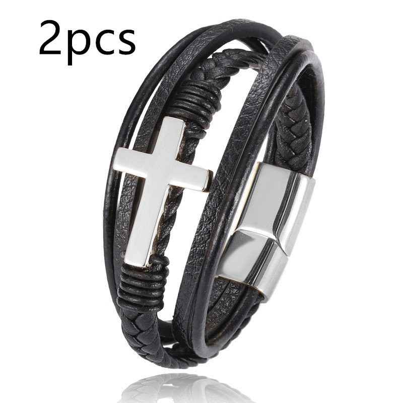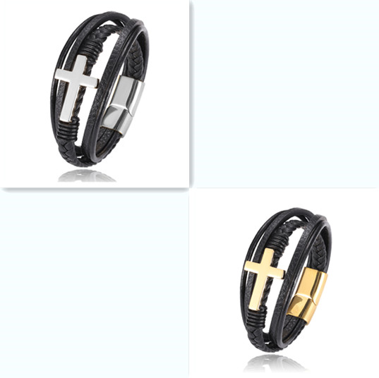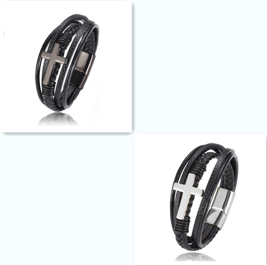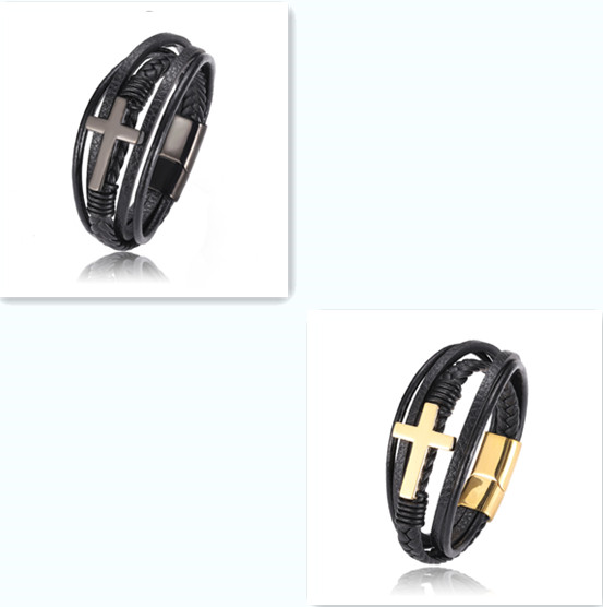 Name: multi style combination color stainless steel men's Leather BraceletMaterial: leather / stainless steelQuality: 100% brand new and high qualitySize: 21.5cmElectroplating: 3 times fine polishing mirror plating, not easy to fade