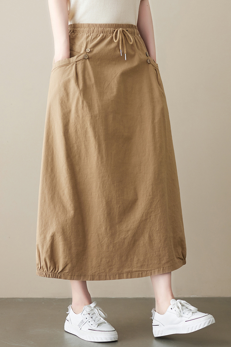 Features: High waist, solid color, A-line skirt