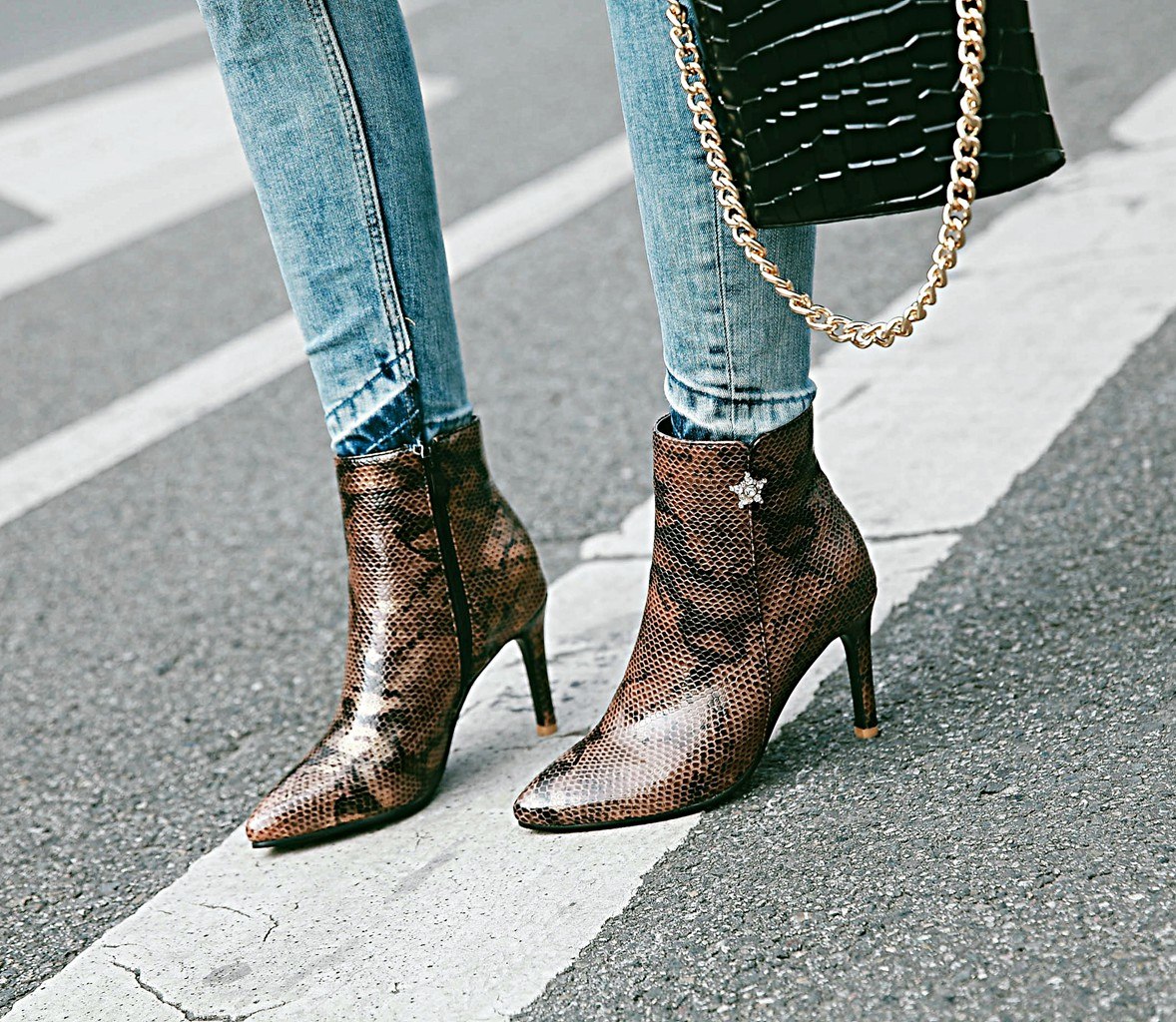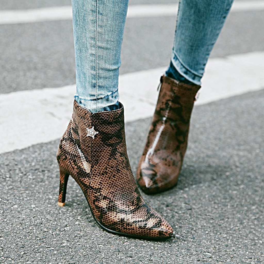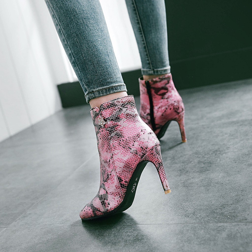 Pointed stiletto heel fashion side zipper sexy snake pattern wild ladies bare boots