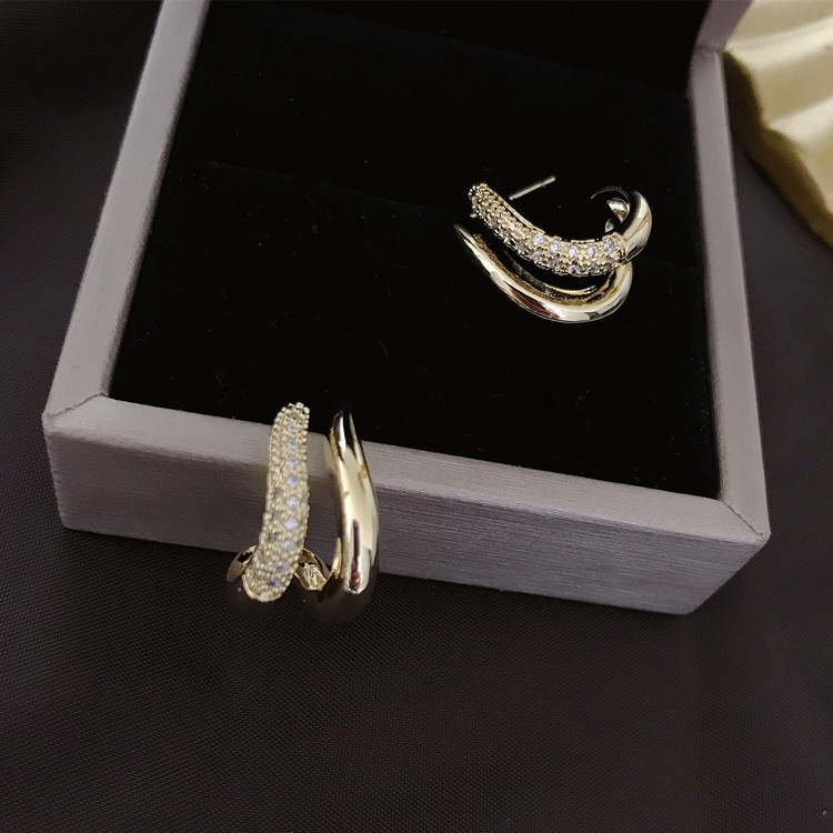Zircon Geometric Earrings Exquisite Fashion Light Luxury Stud