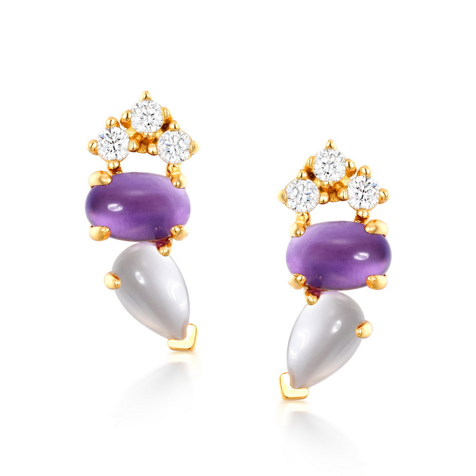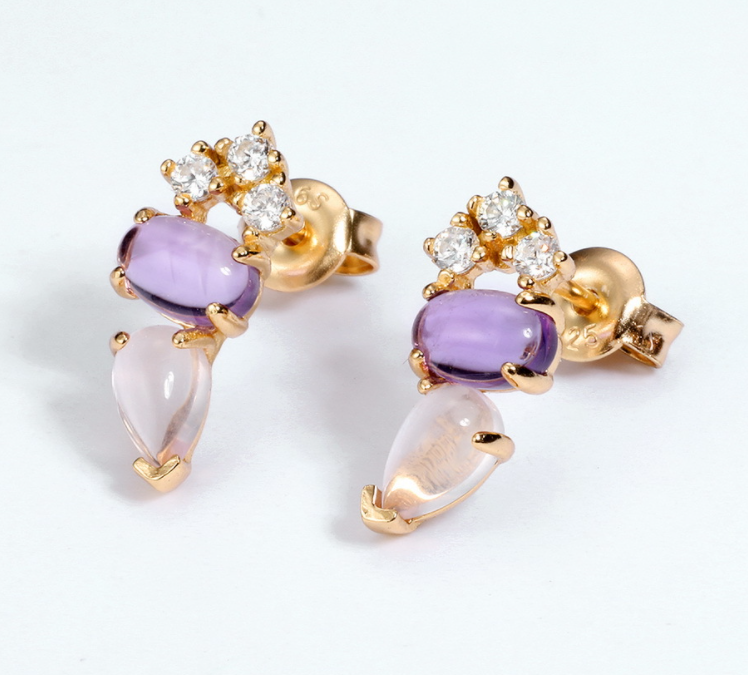 [Main stone] 6*4mm natural powder crystal/6* 4mm natural amethyst/2* 2mm white zirconium