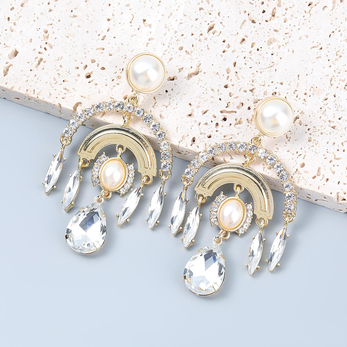 Product information:Material: AlloyStyle: European and AmericanStyle: Women'sModeling: GeometryPackaging: Individually packedInlay material: alloy inlaid artificial gems/semi-precious stonesColor: white, colorPacking list:Earring x1