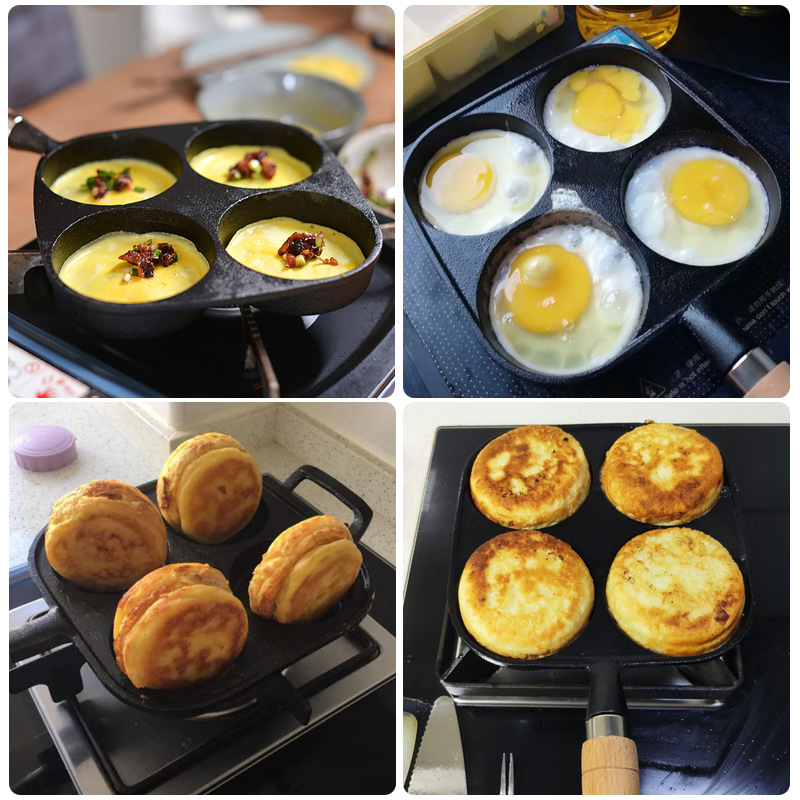 Four holes (with auxiliary ears) pot body diameter 19.5cm; single hole diameter 8.5cm; depth 2.5cm; handle length 19cm