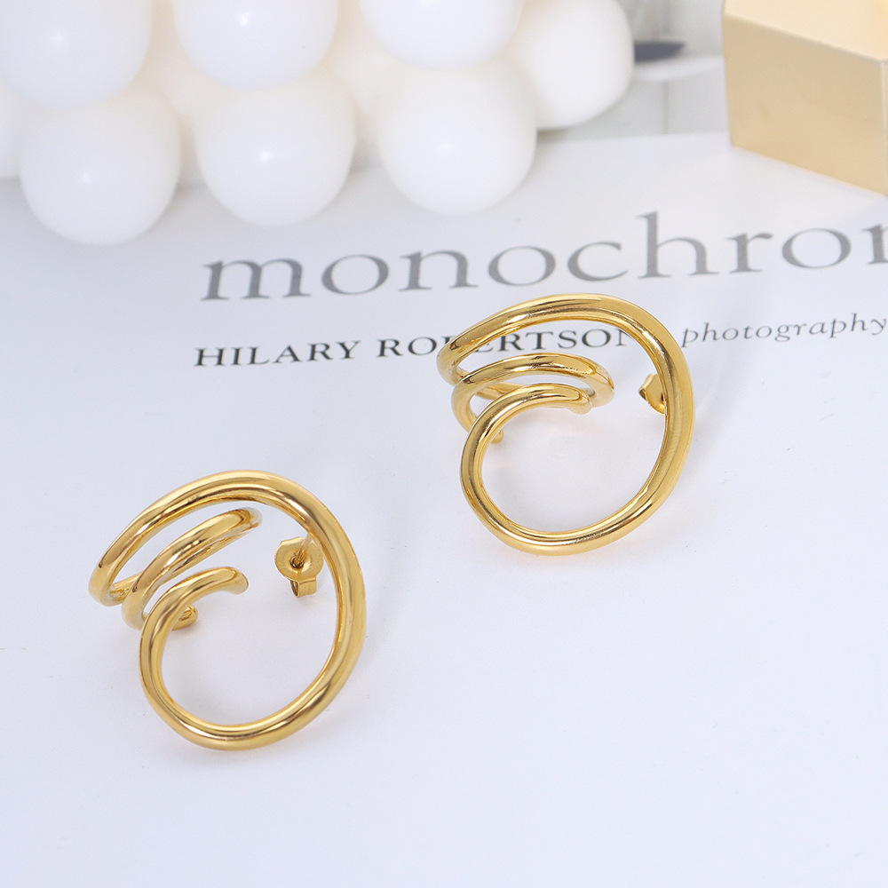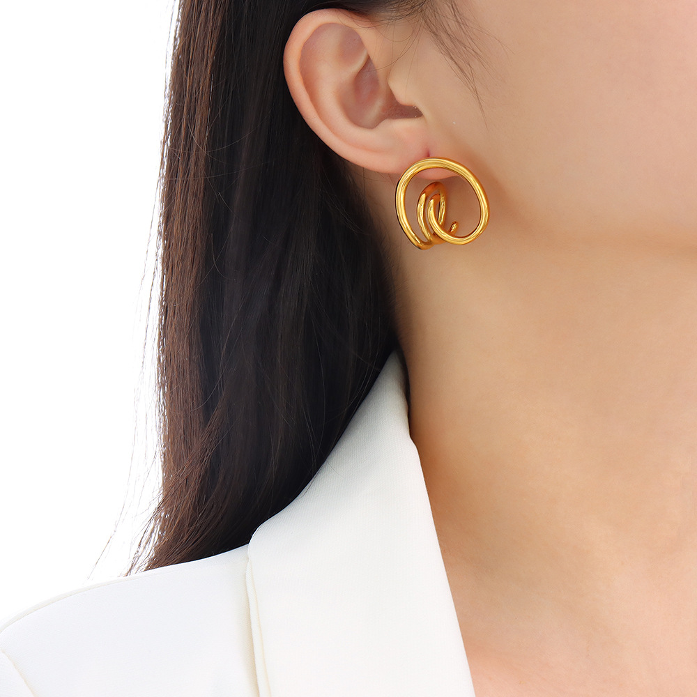 Product information:Treatment Process: Electroplating Color: A pair of gold earrings Material: titanium steel Popular elements: metal, geometry Size: earrings about 2.4x 2.3cm