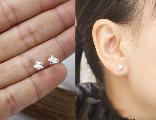 Full Silver Cute Rabbit Earrings Female Rabbit Earrings Anti Allergy Ear