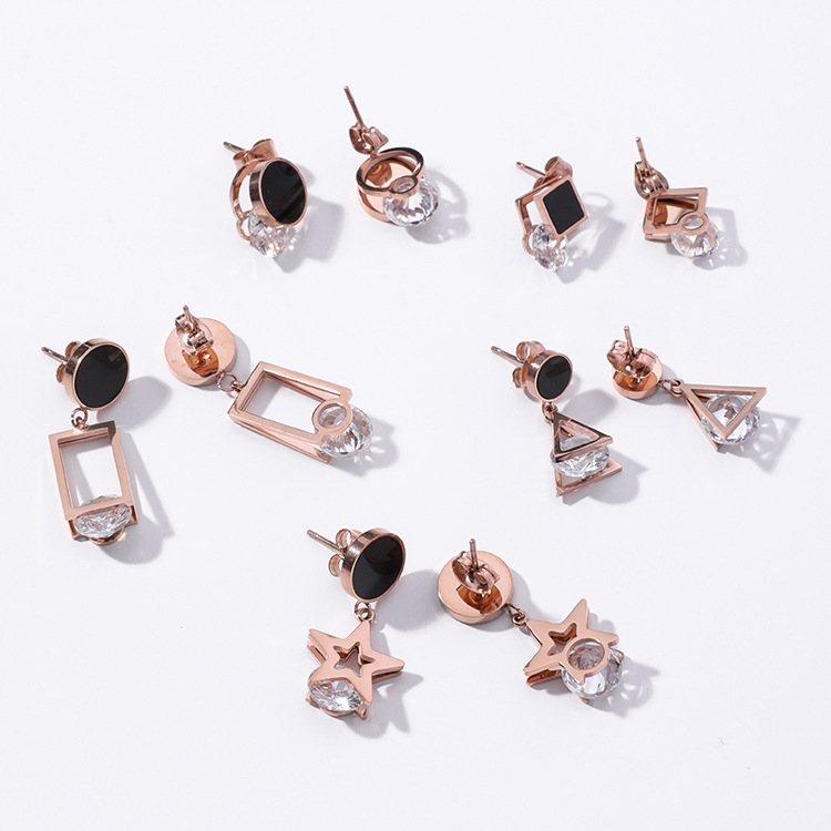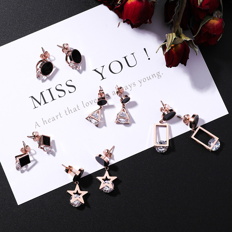 Titanium steel earrings short round square five-pointed star stud earrings stainless steel small earrings