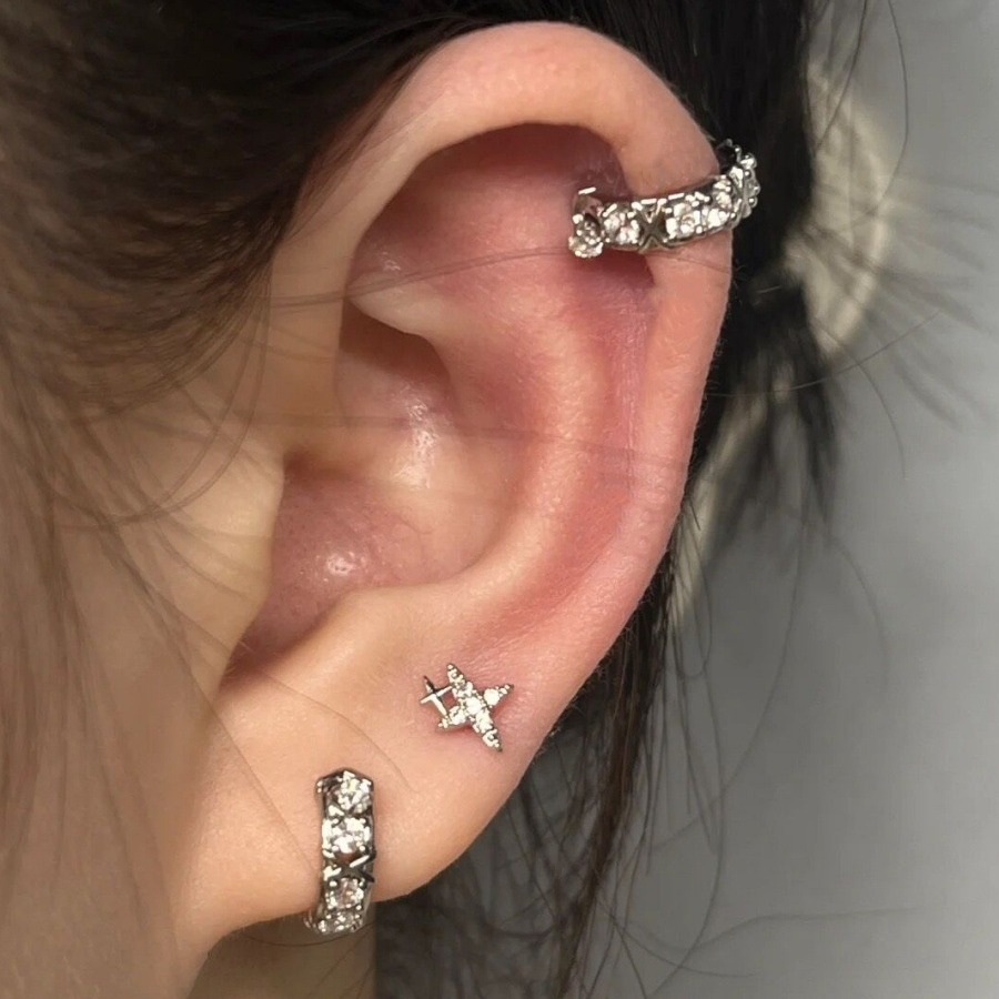 Product information:Treatment Process: Electroplating Color: Cross Diamond otica ring single, cross Diamond otica ring double Applicable people: Unisex Material: Copper Shape: Geometry Type: ear studs