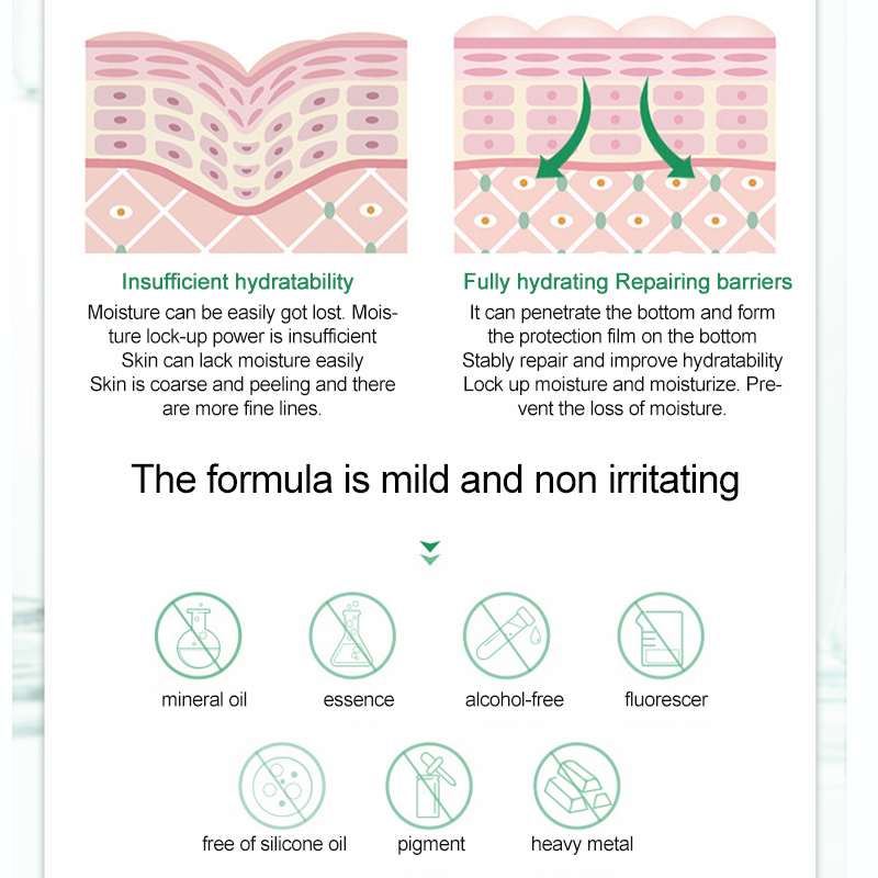 Cosmetic efficacy: shrink pores, moisturizing, after-sun repair, soft skin