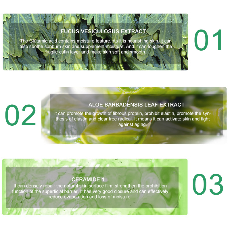 Ingredients : Butylene Glycol, Glycerin, Vitamin B5, Aloe Barbadensis Leaf Extract, Fucus Extract, Centella Asiatica Extract, Beta-Glucan, Tremella Polysaccharide, Nerve