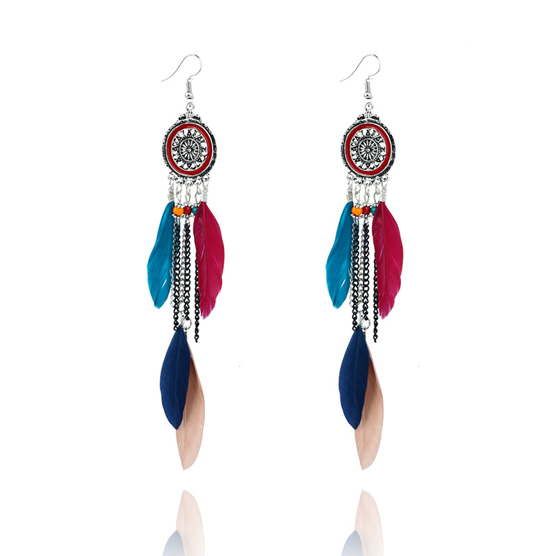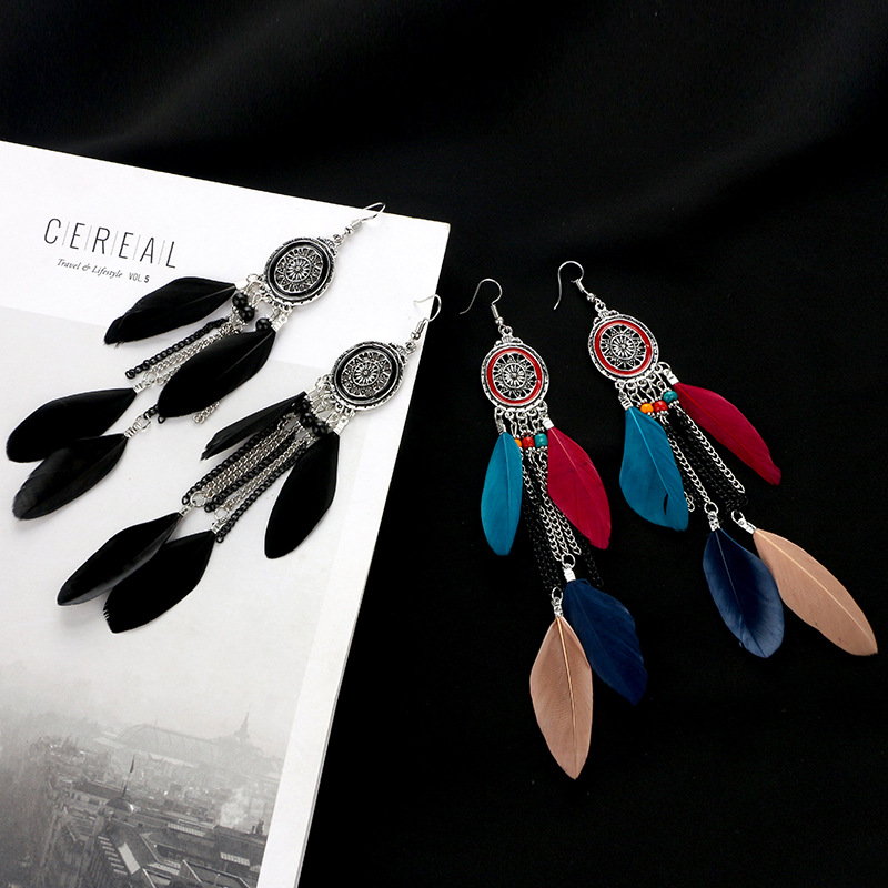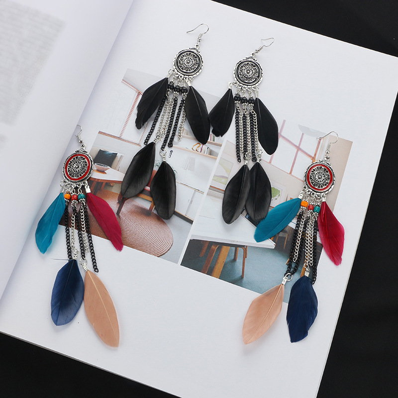 Women's long feather tassel earrings