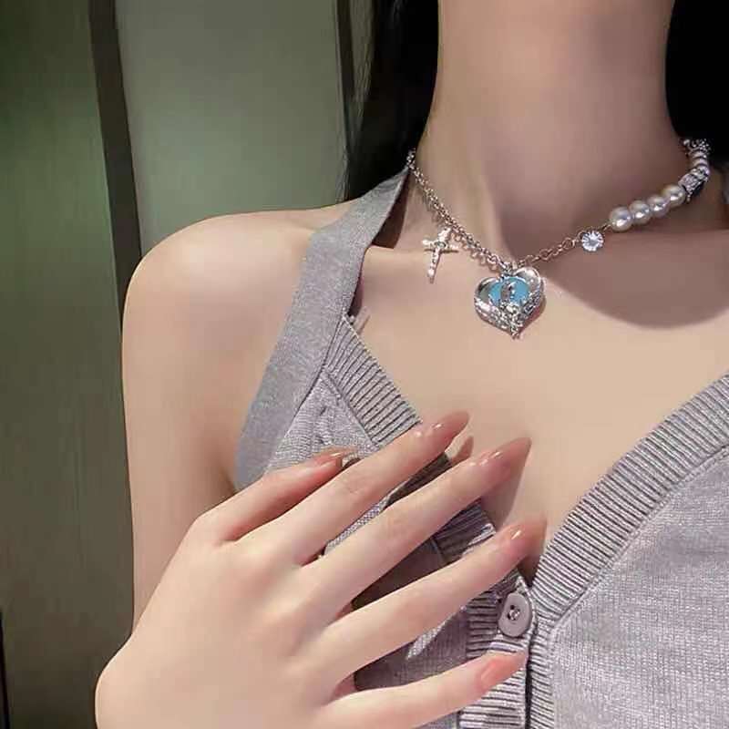 Style: sweet and coolMaterial: AlloyTreatment process: electroplatingType: NecklaceStyle: Women'sShape: Heart-shaped