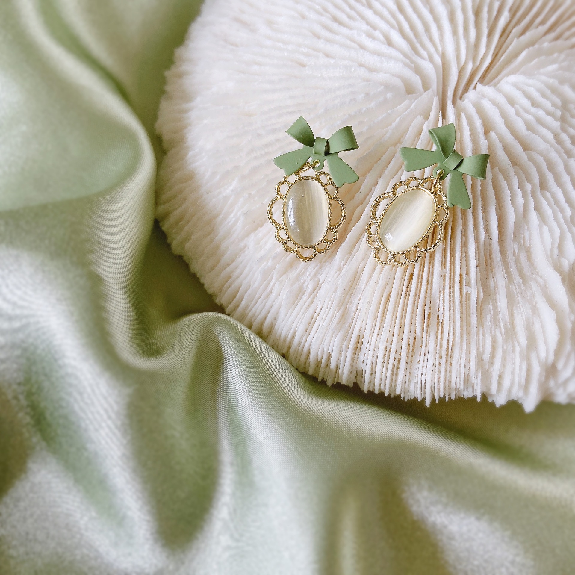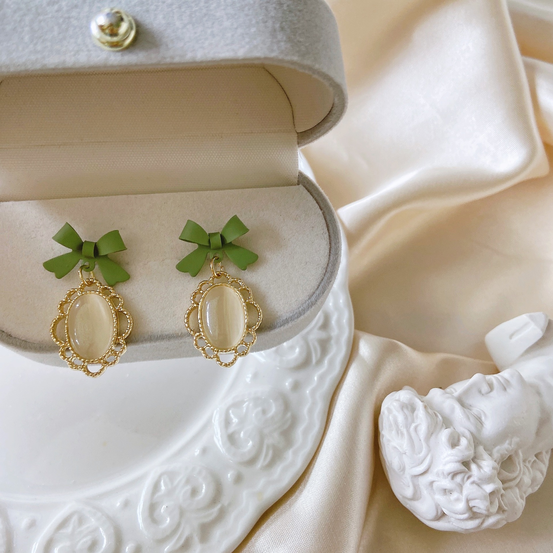 Product information:Treatment Process: Electroplating Color: Bow silver needle cat eye stud earrings, bow triangle pad ear clip Applicable population: Female Material: Opal Shape: Bow Style: French retro Size: about 2.1cm long