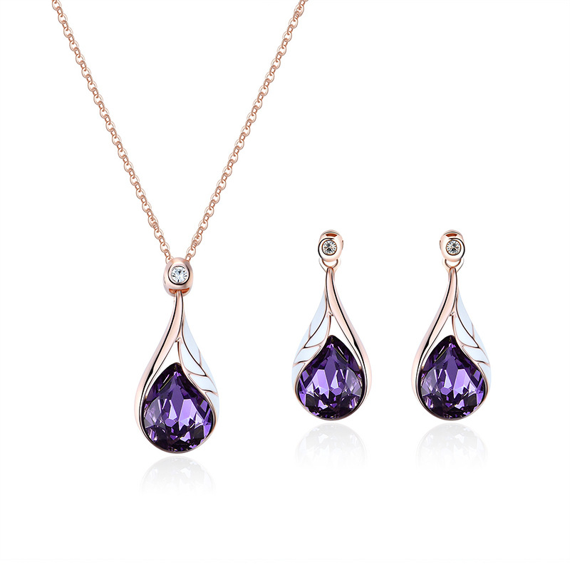 Product information:Material: AlloyTreatment process: electroplatingStyle: Women'sSet combination: earrings + item decorationsPattern: Love/Water Drop/BellColor: 61172403 purplePacking list: