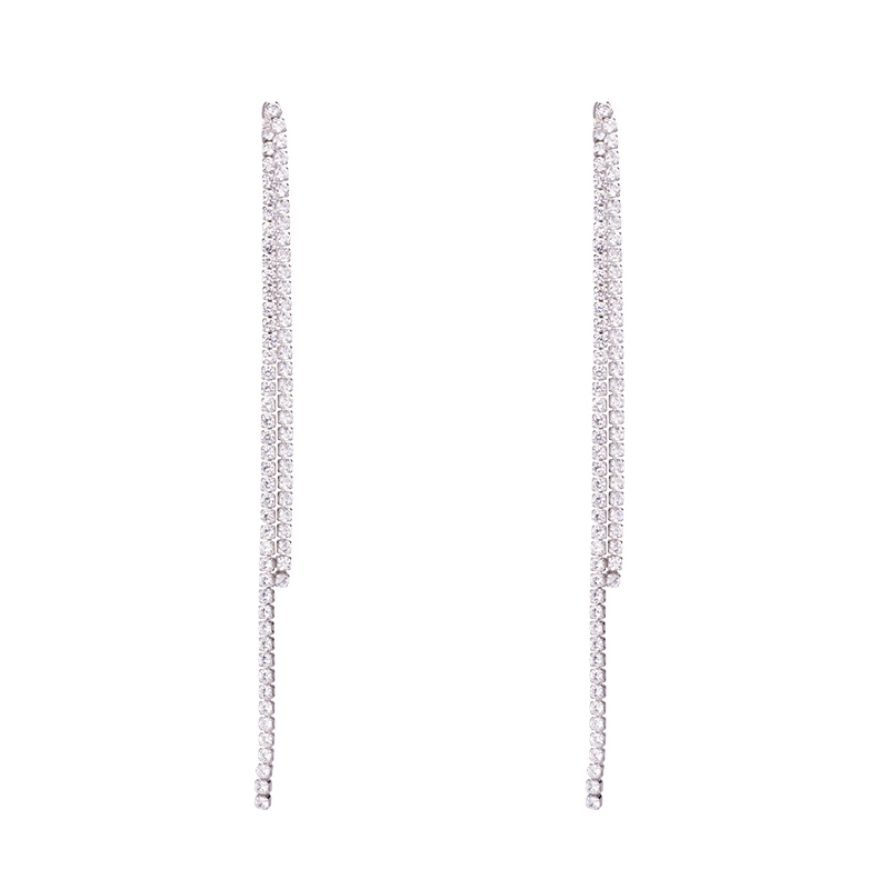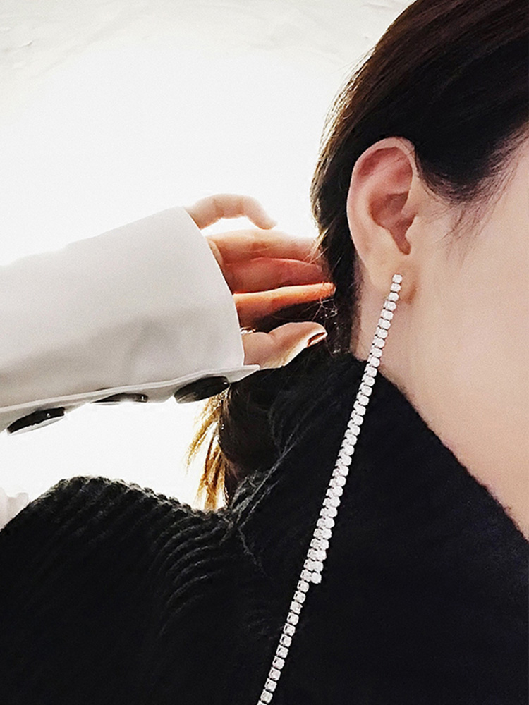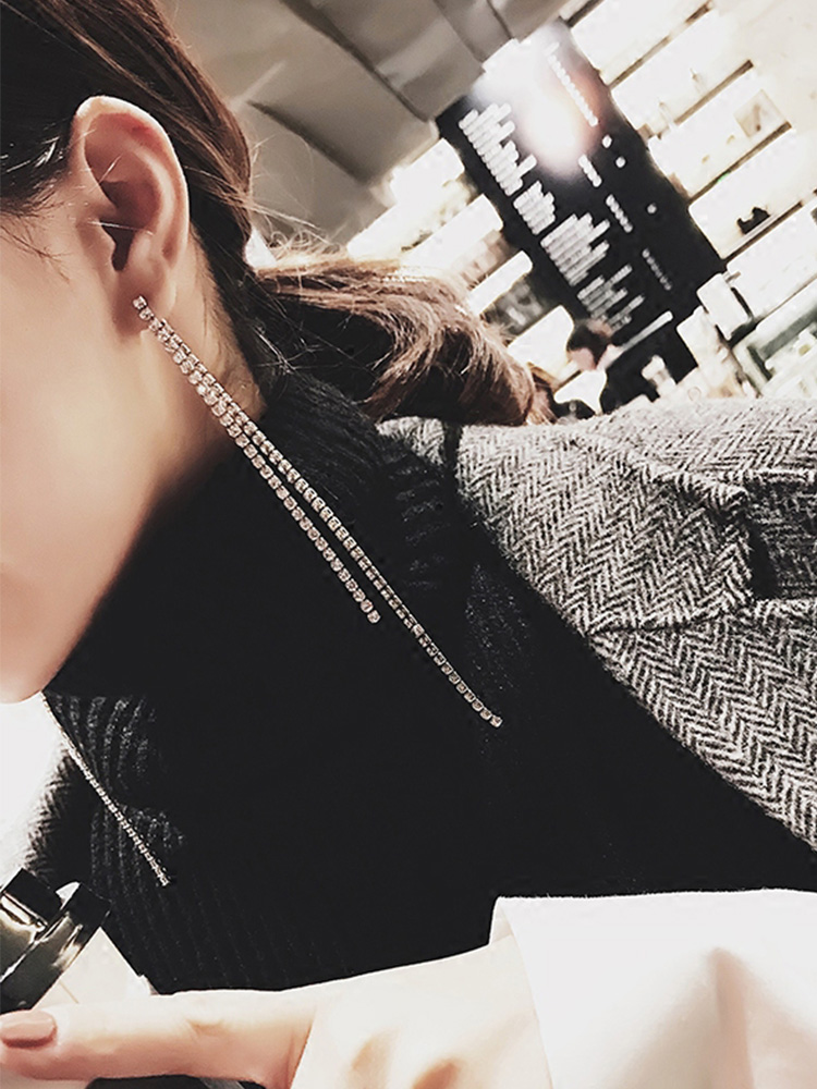 Silver needle long tassel earrings female