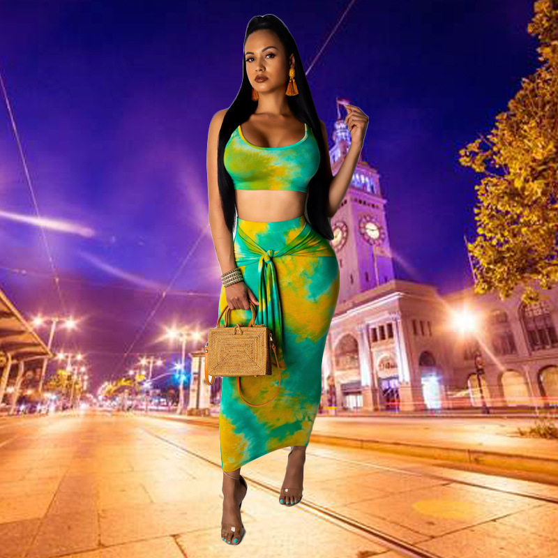 Casual tie-dye camisole two-piece suit