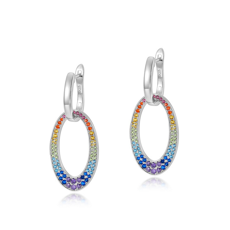 S925 Silver Rainbow Ear Ring Detachable Two-piece Vintage Zircon Earrings For Women