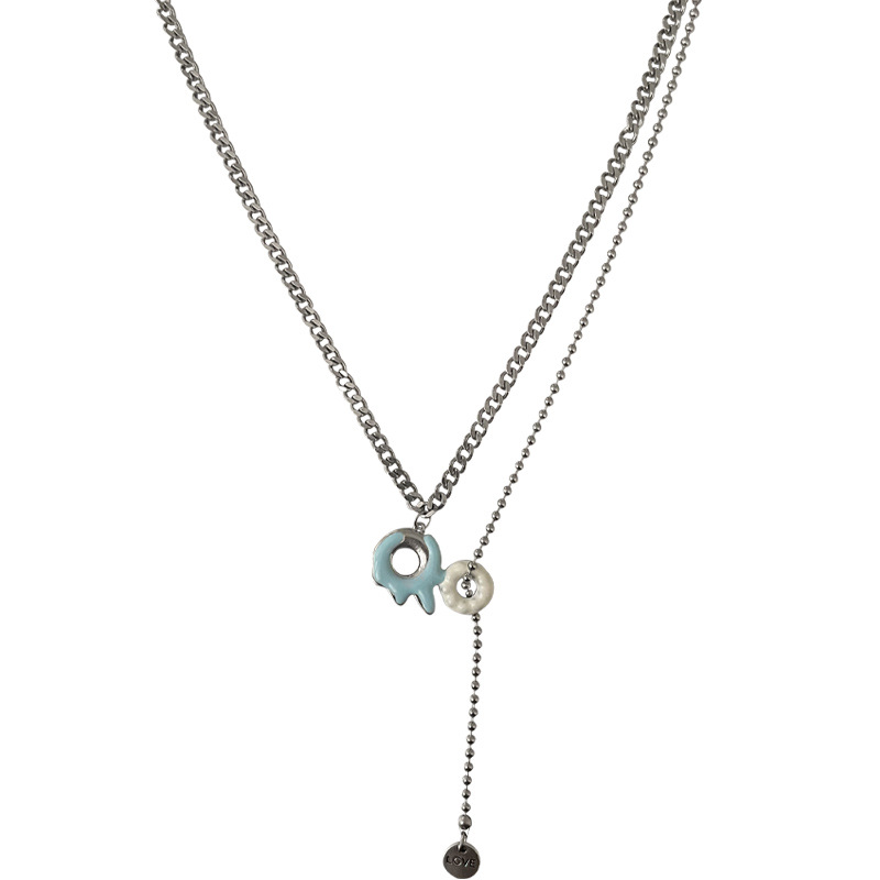 Product information:Color: blue and white donut necklaceApplicable people: womenPendant material: AlloyChain style: curb necklaceMaterial: titanium steelModeling: geometric, otherPopular elements: doughnutsStyle: sweet and cool