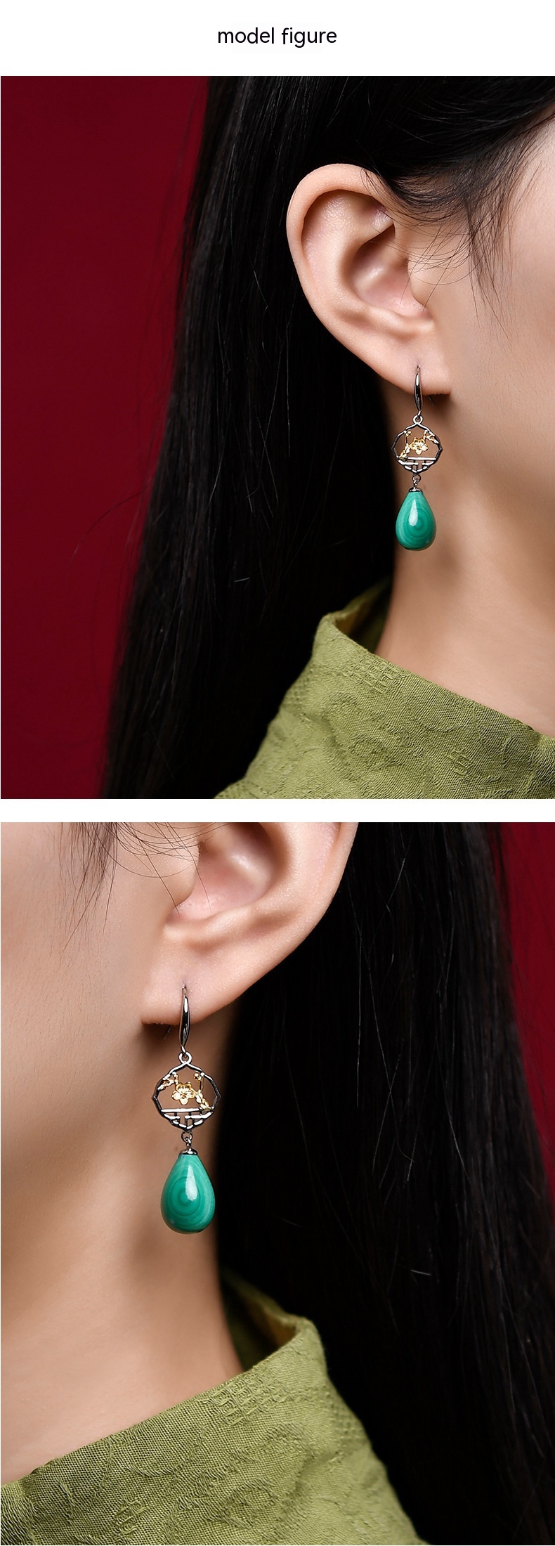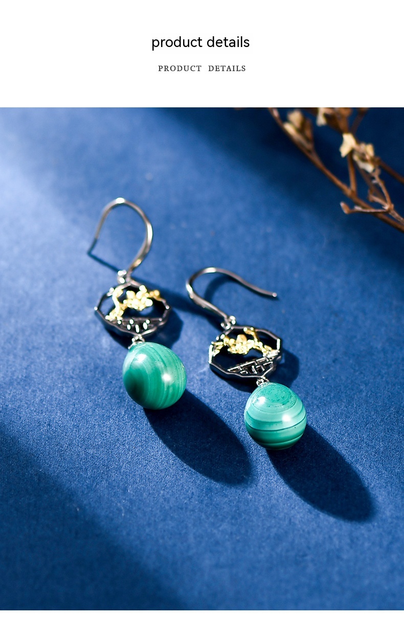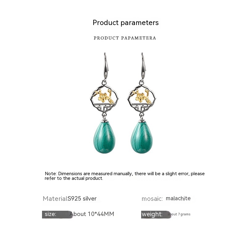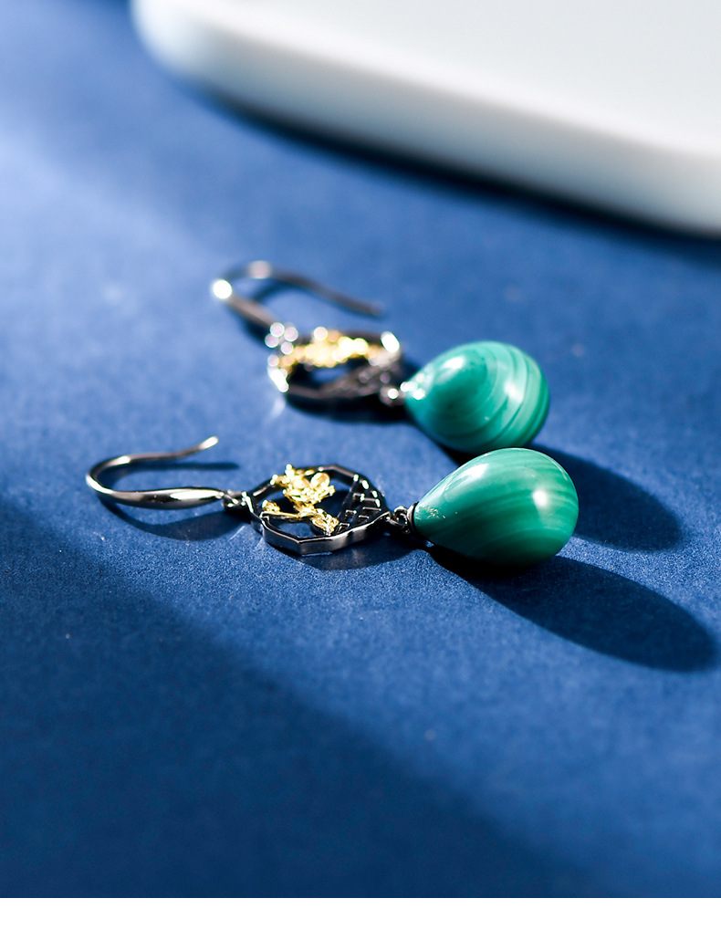 Product information:Treatment Process: inlaid gem Color: earrings Material: Silver Shape: drop shape Popular elements: water droplets Style: National style