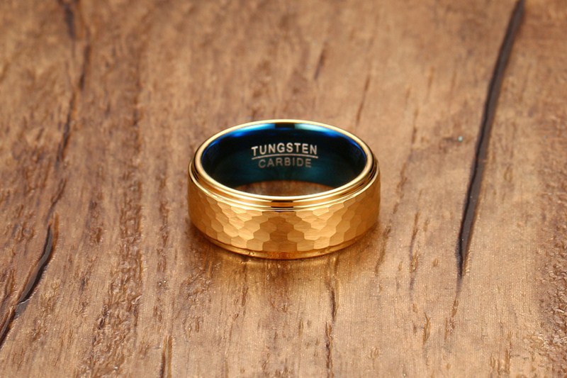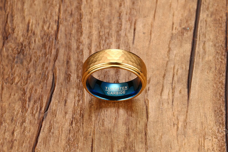 8MM Tungsten Steel Ring Gold And Blue Men's Ring