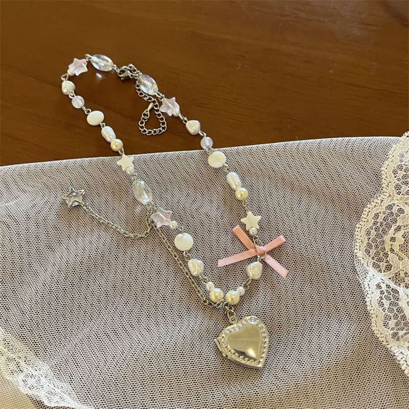 Product information:Treatment Process: Electroplating Color: as the main image Applicable population: Female Pendant material: Alloy Chain style: ball bead necklace Material: titanium steel Shape: heart shape