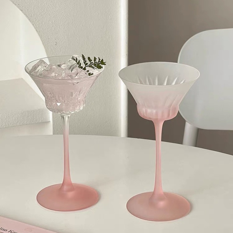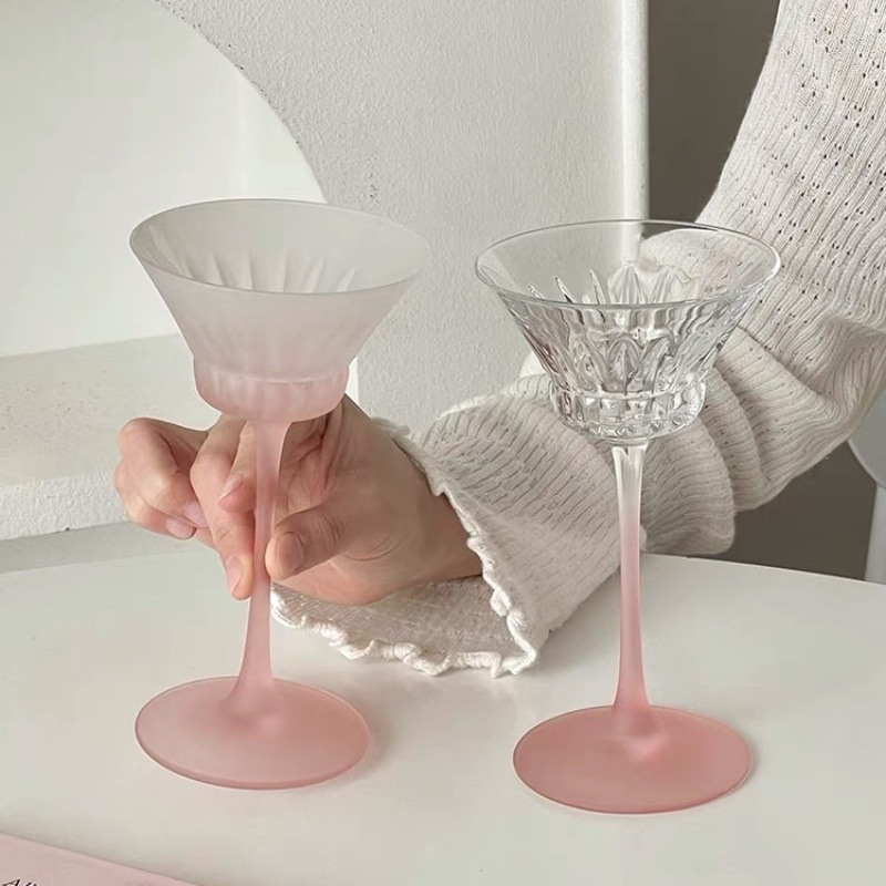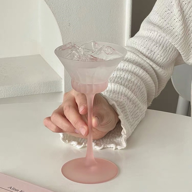 Product information:Style type: simple style Color: Frosted Pink Rod Goblet, frosted gradually changing pink pink Rod Goblet Material: ordinary glass Style: modern simplicity Capacity: 101-200ml Category: Wine Glass