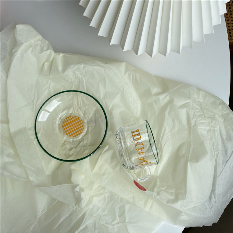 Korean INS niche design retro thousand bird yellow plaid glass coffee cup and saucer set afternoon tea and breakfast cup