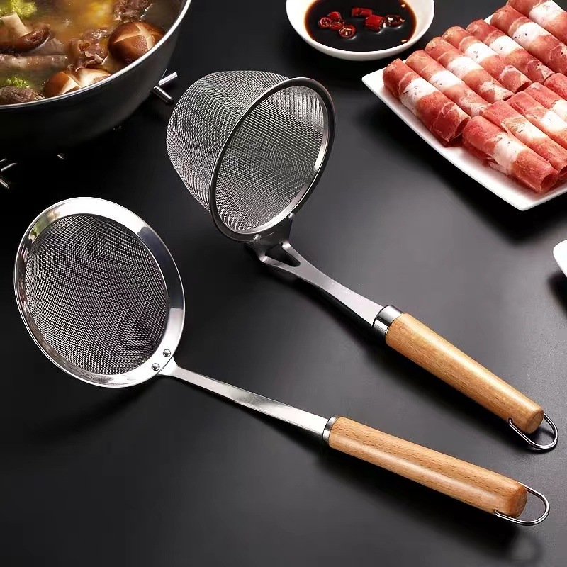 Product information:Specifications: wooden handle colander [12CM], wooden handle rice flour skimmer [12CM]] Material: 304 stainless steel Style: New Chinese style Import or not: no