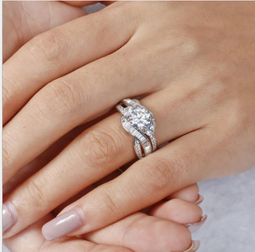 Fashion Europe and America Zircon Ring Crystal Couple Ring