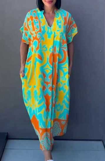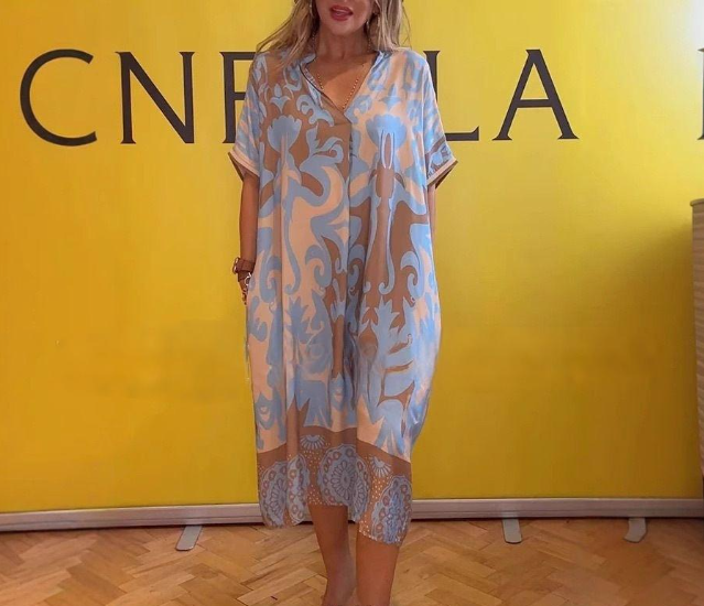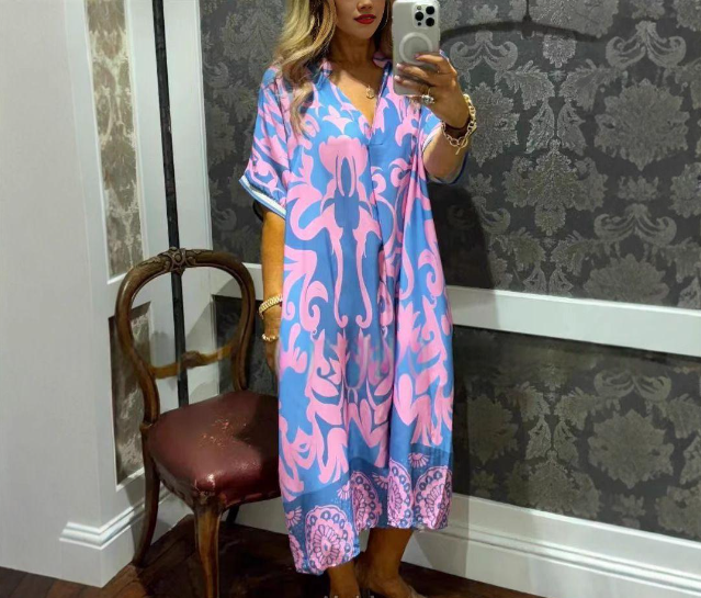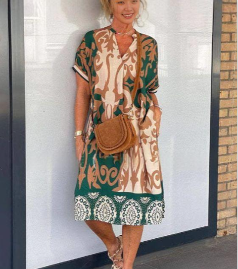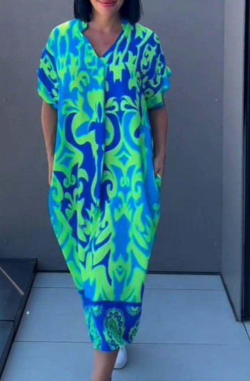 Stay cool and chic this summer with our Women's Casual V-Neck Short Sleeve Loose Fit Printed Dress. Designed for comfort and style, this dress is your go-to choice for everyday wear.