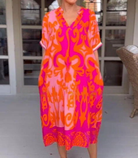 Whether you're running errands, meeting friends, or enjoying a sunny day out, this dress is perfect for any occasion. The loose fit allows for easy movement, while the stylish design ensures you look put-together effortlessly.