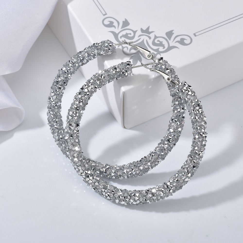 Trendy Fashion Lady Flash Diamond Circle Earrings