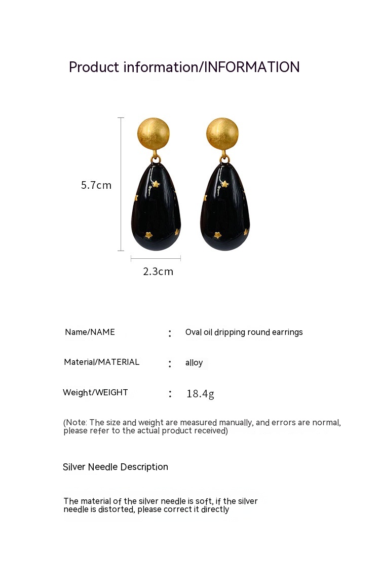 Product information:Treatment Process: dripping oilColor: Silver Needle-black drip oval earringsApplicable people: womenMaterial: AlloyShape: GeometricPopular elements: EllipseStyle: Retro
