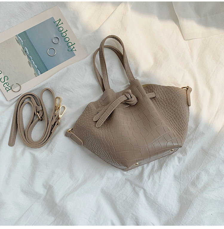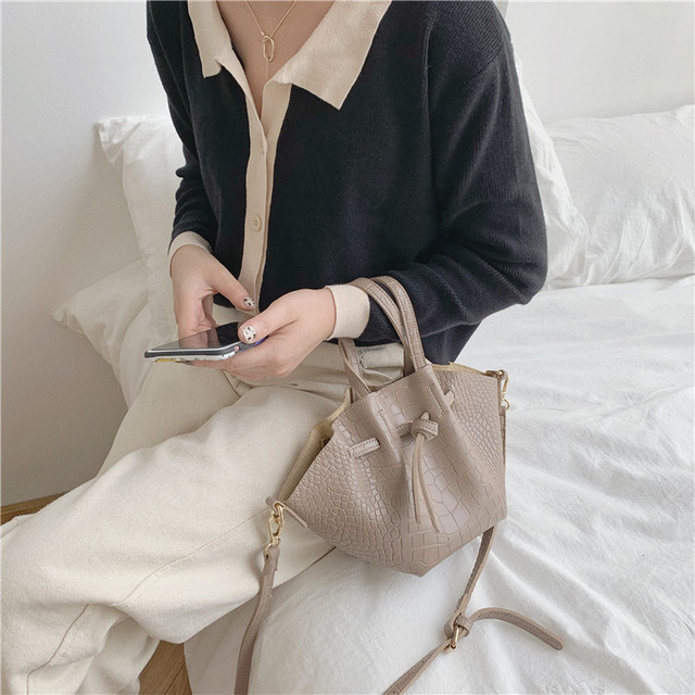 Fabric texture: PULining texture: synthetic leatherBag shape: bucket typeInner structure of the bag: zipper pocketColor: khaki, green, black, coffee