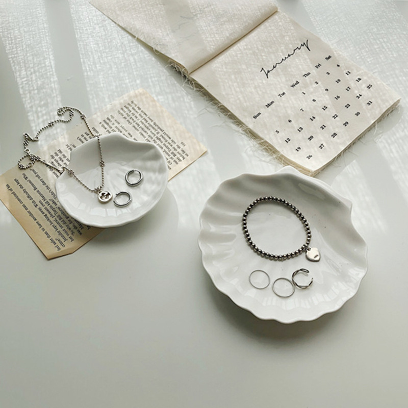 Vintage White Ceramic Shell Dial Sauce Jewelry Storage Tray Tray