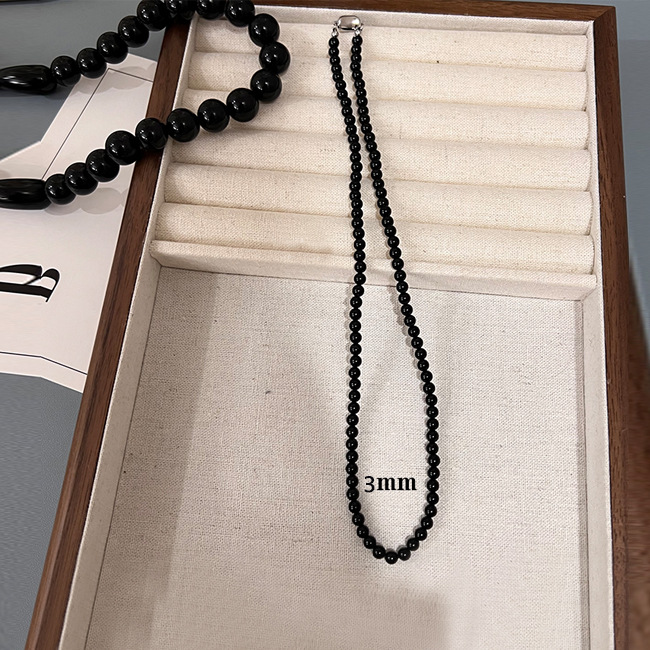 Color: 3mm/black onyx necklace, 4mm/black onyx necklace, 6mm/black onyx necklace, 8mm/black onyx necklace, 10mm/black onyx necklace