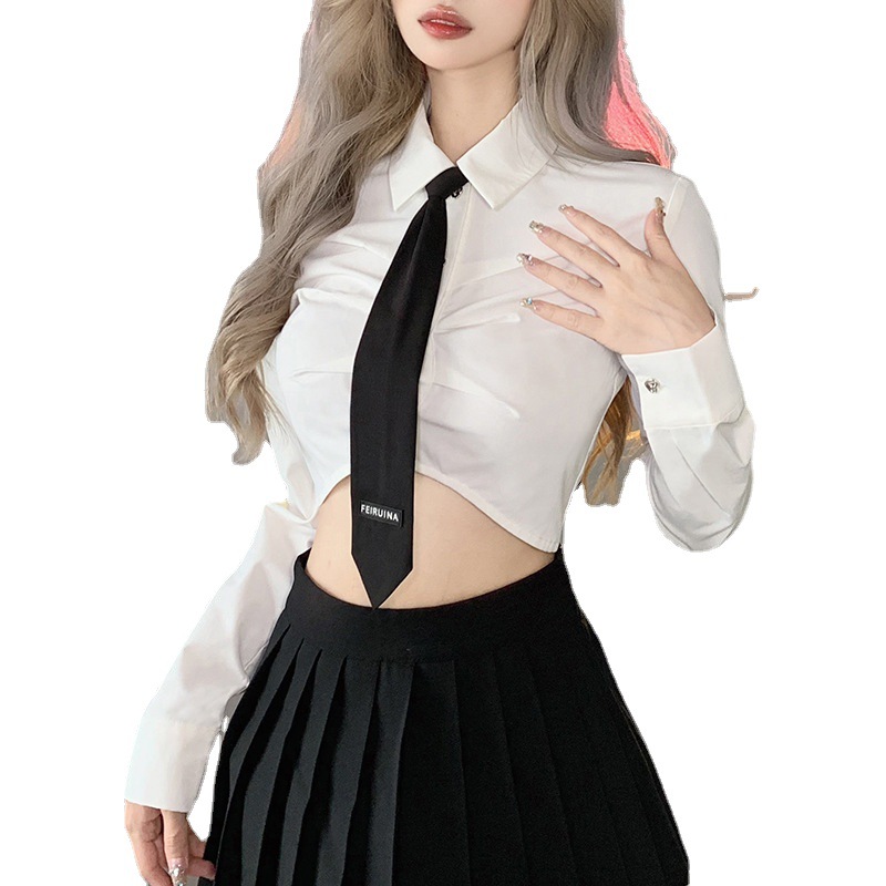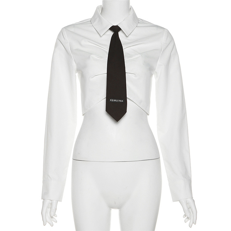 Product information: Pattern: solid color Color: White Size: S,M,L Style: slim fit Style type: private clothing socialite Fabric name: Polyester Length: Ultra Short (≤ 40CM) Sleeve length: long sleeve Craft: collage/stitching