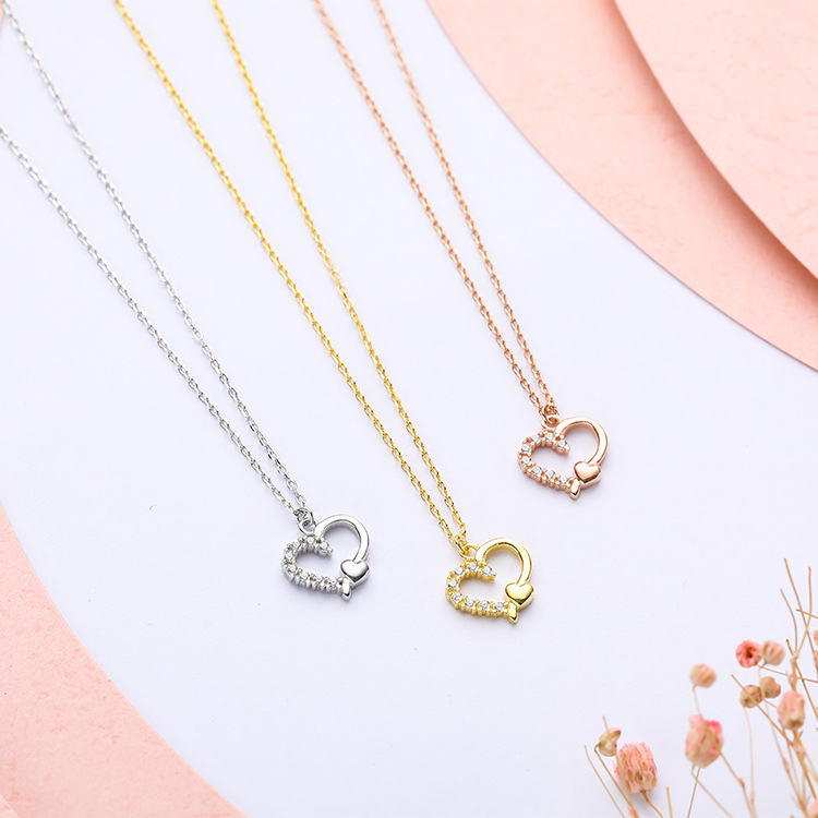 Material: silverProcessing technology: thickening electroplatingShape: heart shapeColor: platinum gold, rose gold, goldSize: 40+2+2CM, pendant: 10*10MM