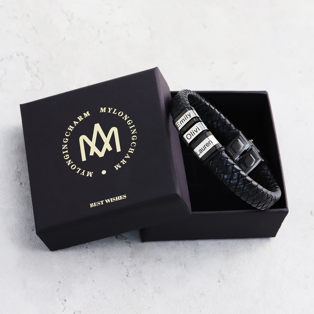 Super comfortable & easy to wear. Great, meaningful gift idea for Father's Day. Family name, special date, initials, coordinates (basically anything you want) can be engraved on the outside of the bracelet.