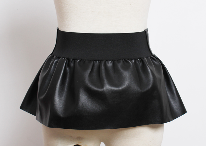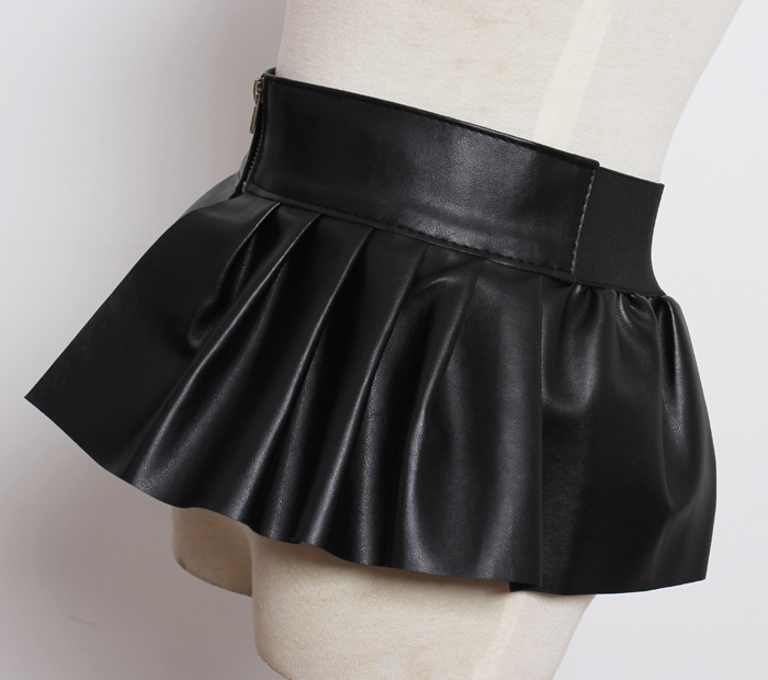 European Station European and American Show Field Street Shooting Lychee Pattern Skirt Ruffled Leather Korean Girdle Belt Female Accessories