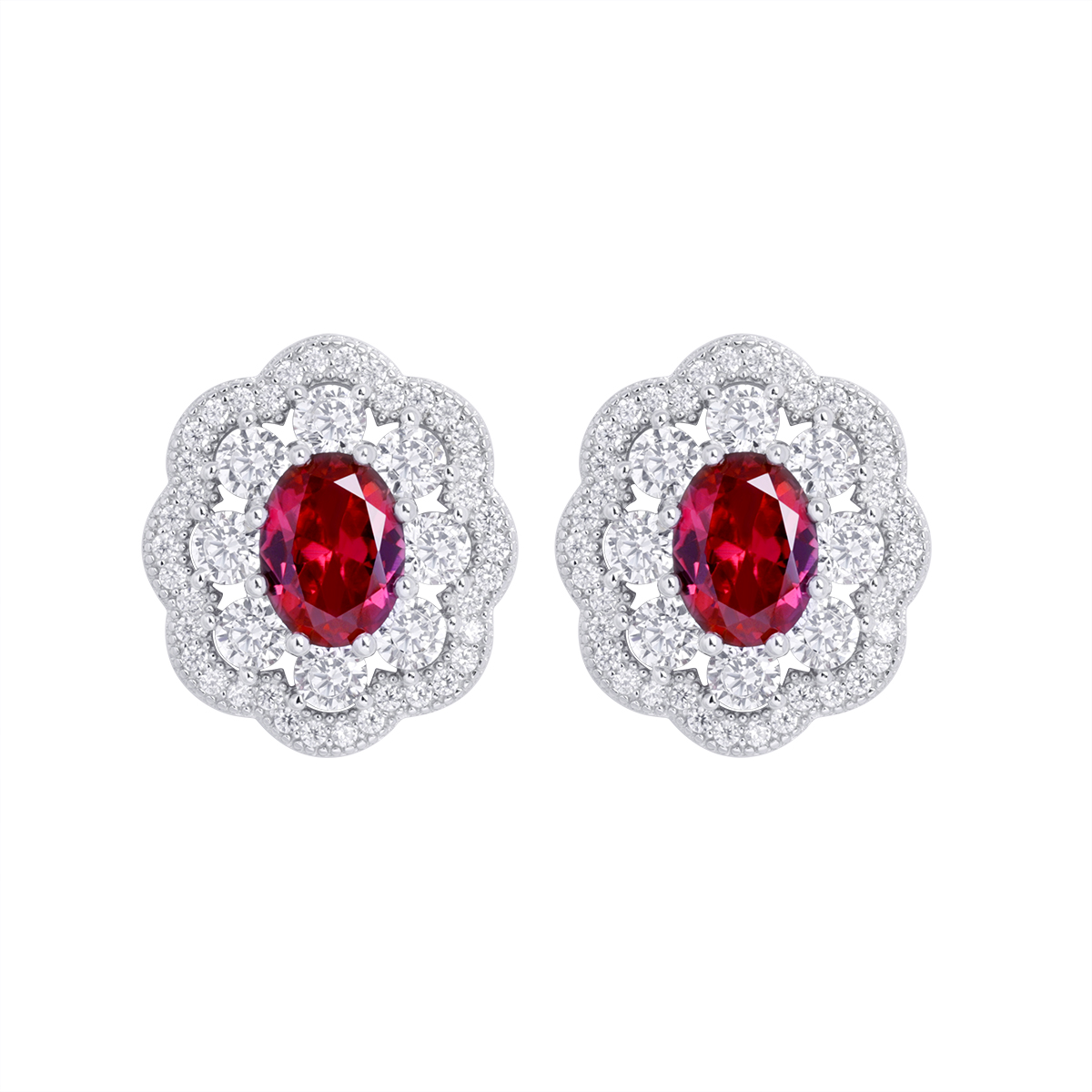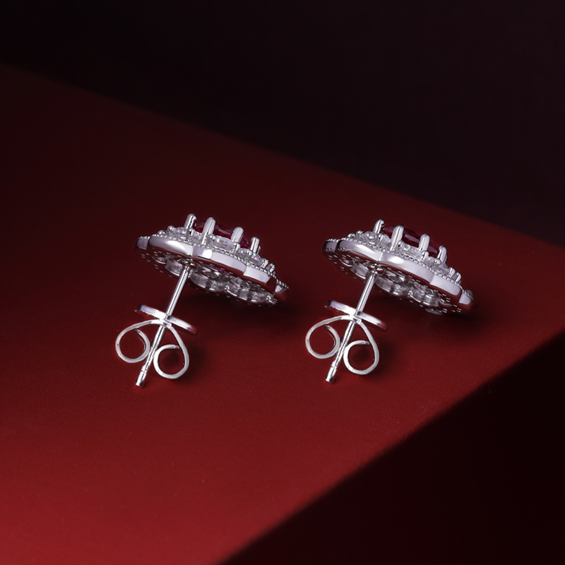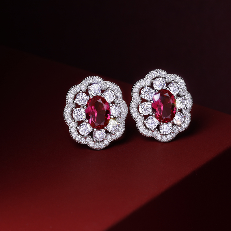 925 Sterling Silver Pigeon Blood Red Egg Shaped Earrings Retro Temperament