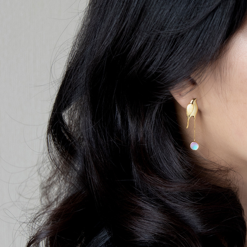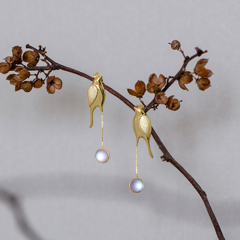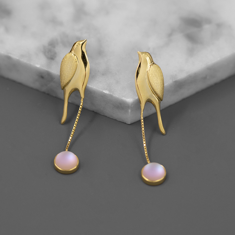 Night Bird S925 Sterling Silver Inlaid Glass Beads Beautiful Natural Elegant Bird Earrings