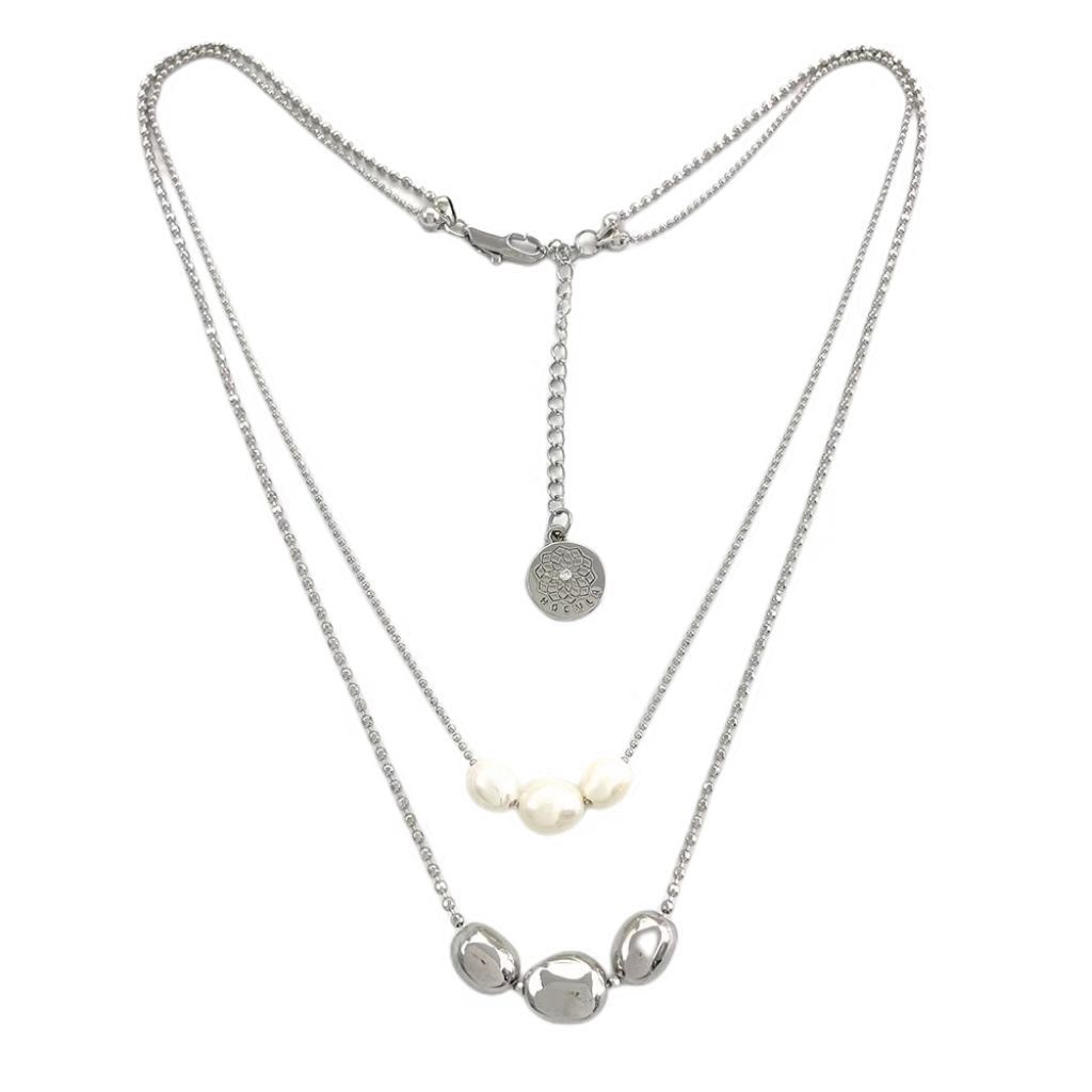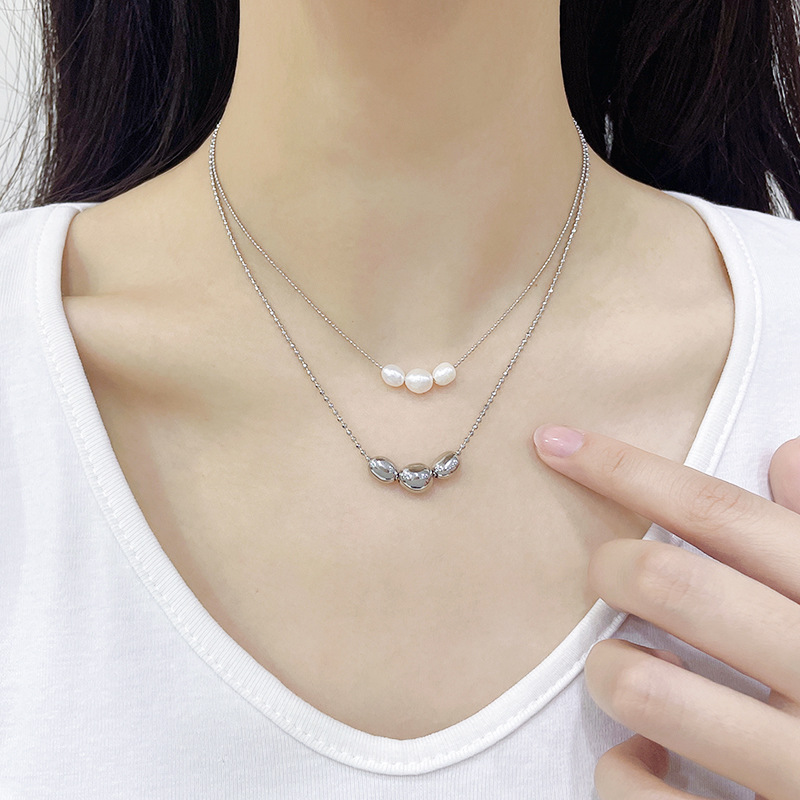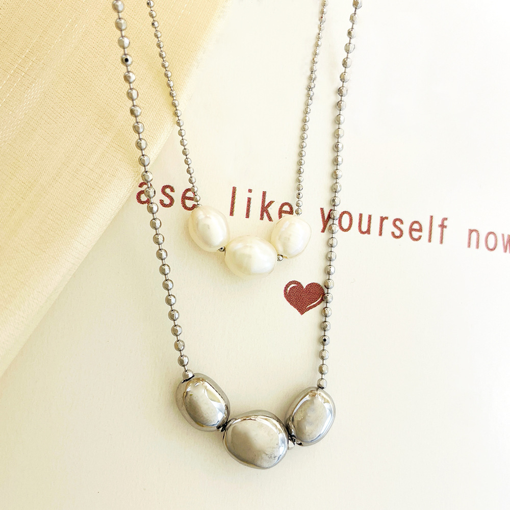 Product information:Material: Pearl, copper white gold plated Treatment Process: Electroplating Chain style: ball bead chain Pendant material: titanium steel Applicable people: women