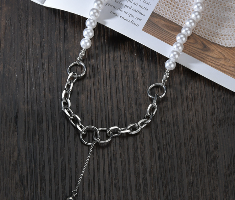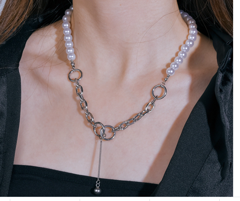 Stainless Steel Splicing Pearl Necklace Women Fashion Jane