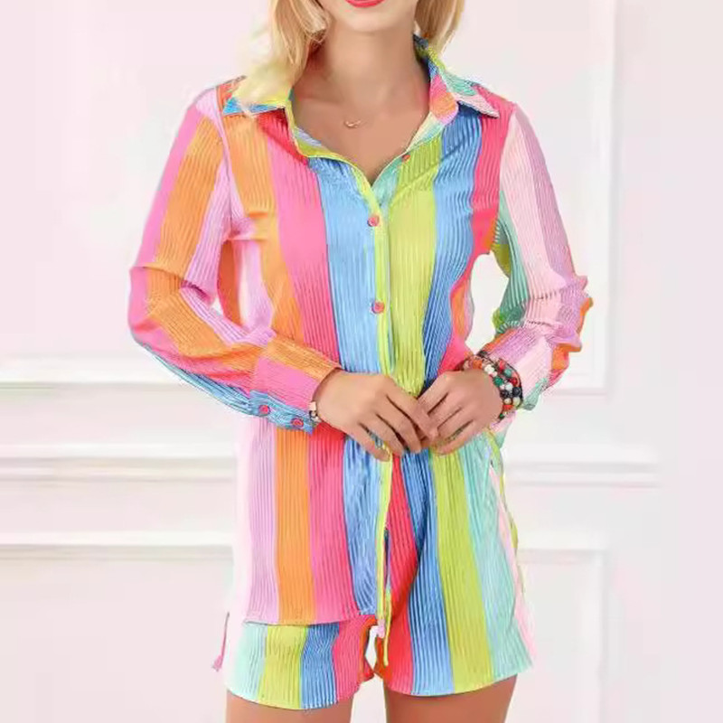 Product information:Pattern: Rainbow Color: mixed color Size: S,M,L,XL Style: two-piece set Fabric name: PolyesterProcess: digital printing
