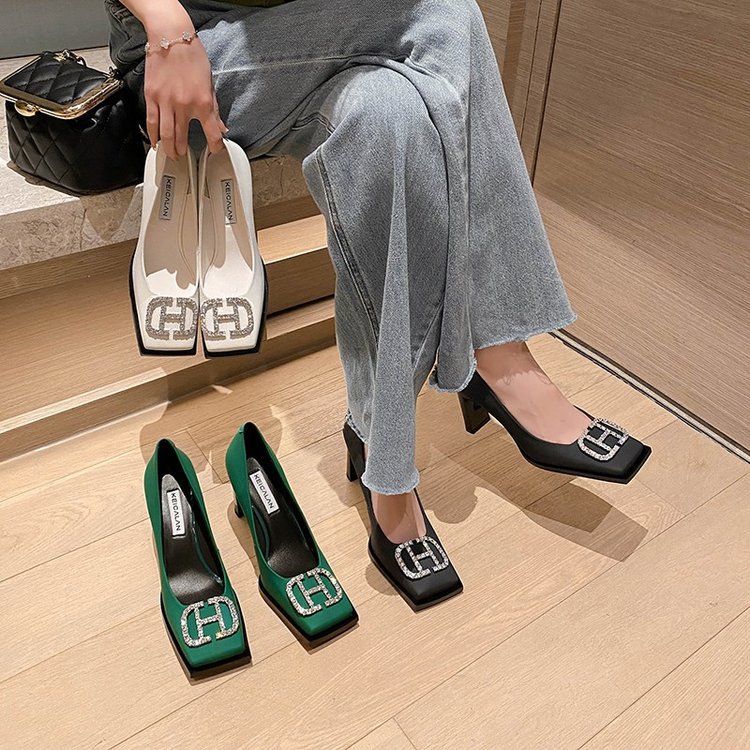 Product information :Shoe head shape: square headMaterial: suedeStyle: Korean versionHeel height: Ultra-high heel (over 8CM)Color: white, green, blackSize Information:Sizes: 34,35,36,37,38,39