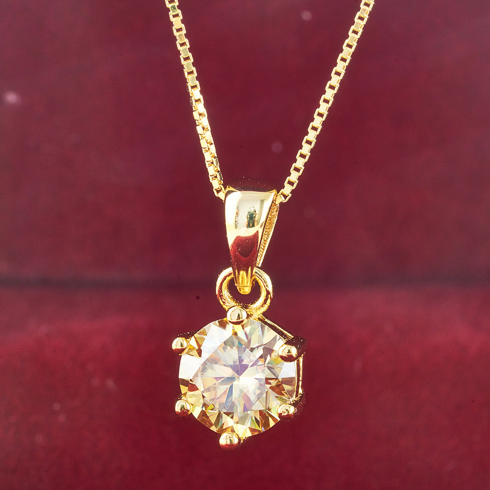 Product information:Treatment Process: Electroplating Color: yellow moissanite necklace Applicable people: Unisex Material: Silver Shape: U-shaped Popular elements: round Style: Natural