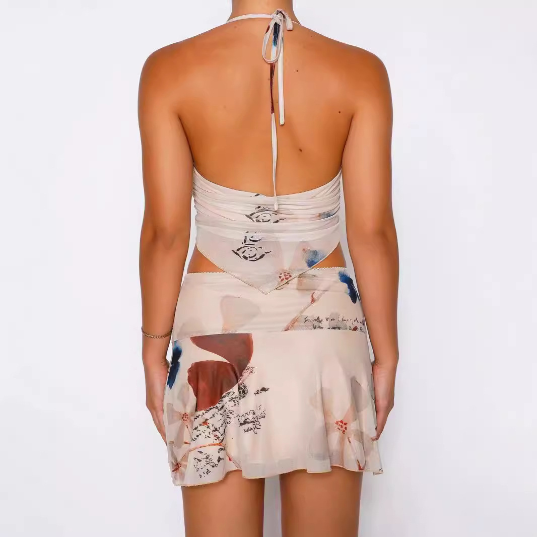 Women's Clothing Fashion Mesh Printing Suit