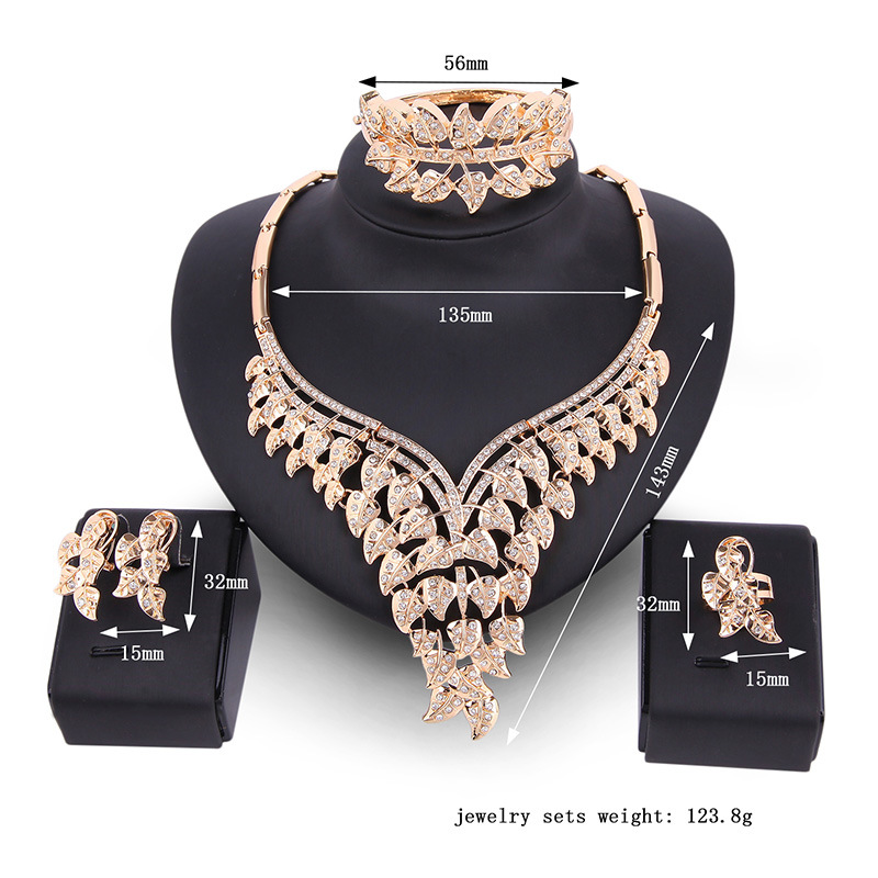 Product information:Material: AlloyProcessing technology: diamondStyle: Women'sSet combination: earrings + item decorations + hand decorationsPattern: squareColor: 18K gold/61164332Packing list: