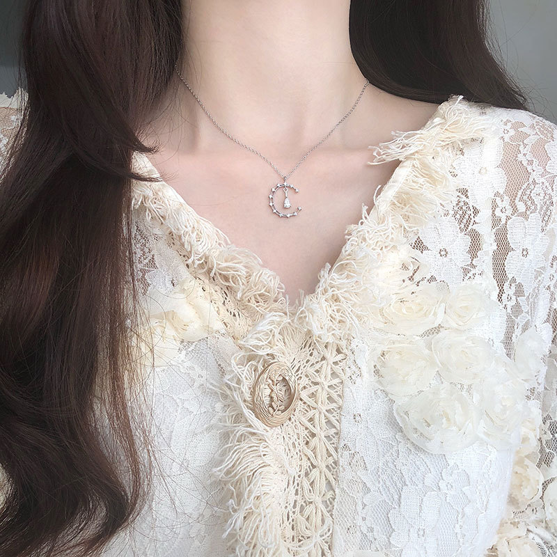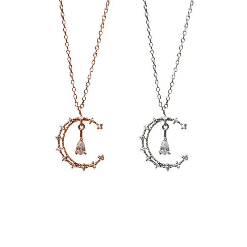 Material: S925 silverSize: total length 46.1cm, extension chain 6.3cm, moon 2.1cm long, 1.6cm wide, zircon 0.6cm long, 0.4cm wide,Weight: 2.15g