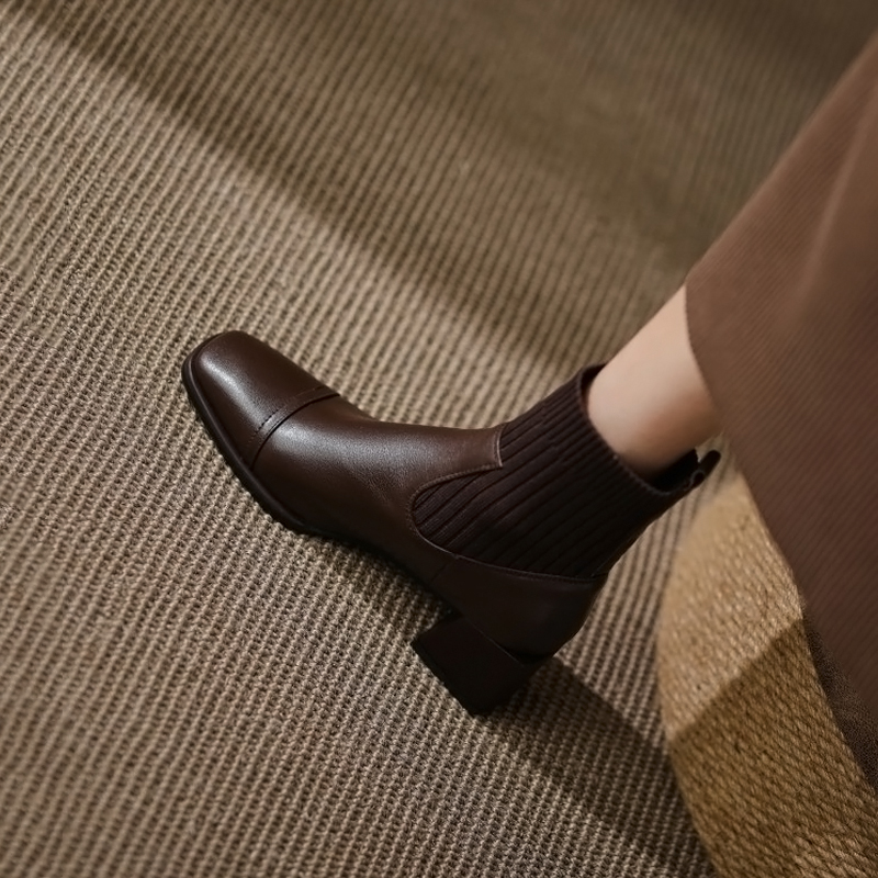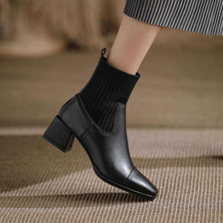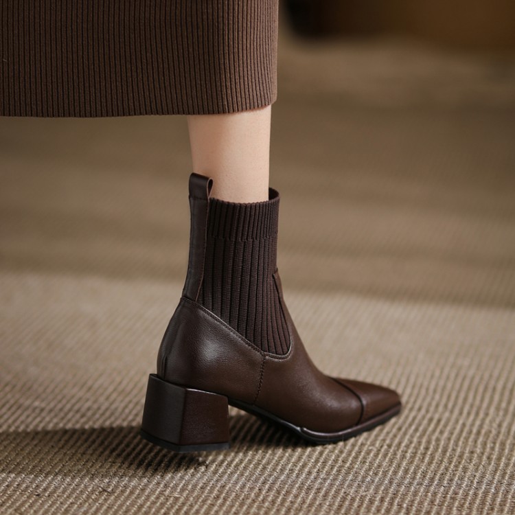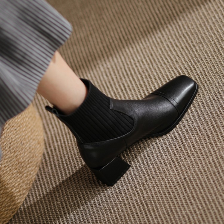 Closure: SleeveStyle: European and AmericanTube height: short tubeHeel style: thick heelHelp surface material: first layer cowhide